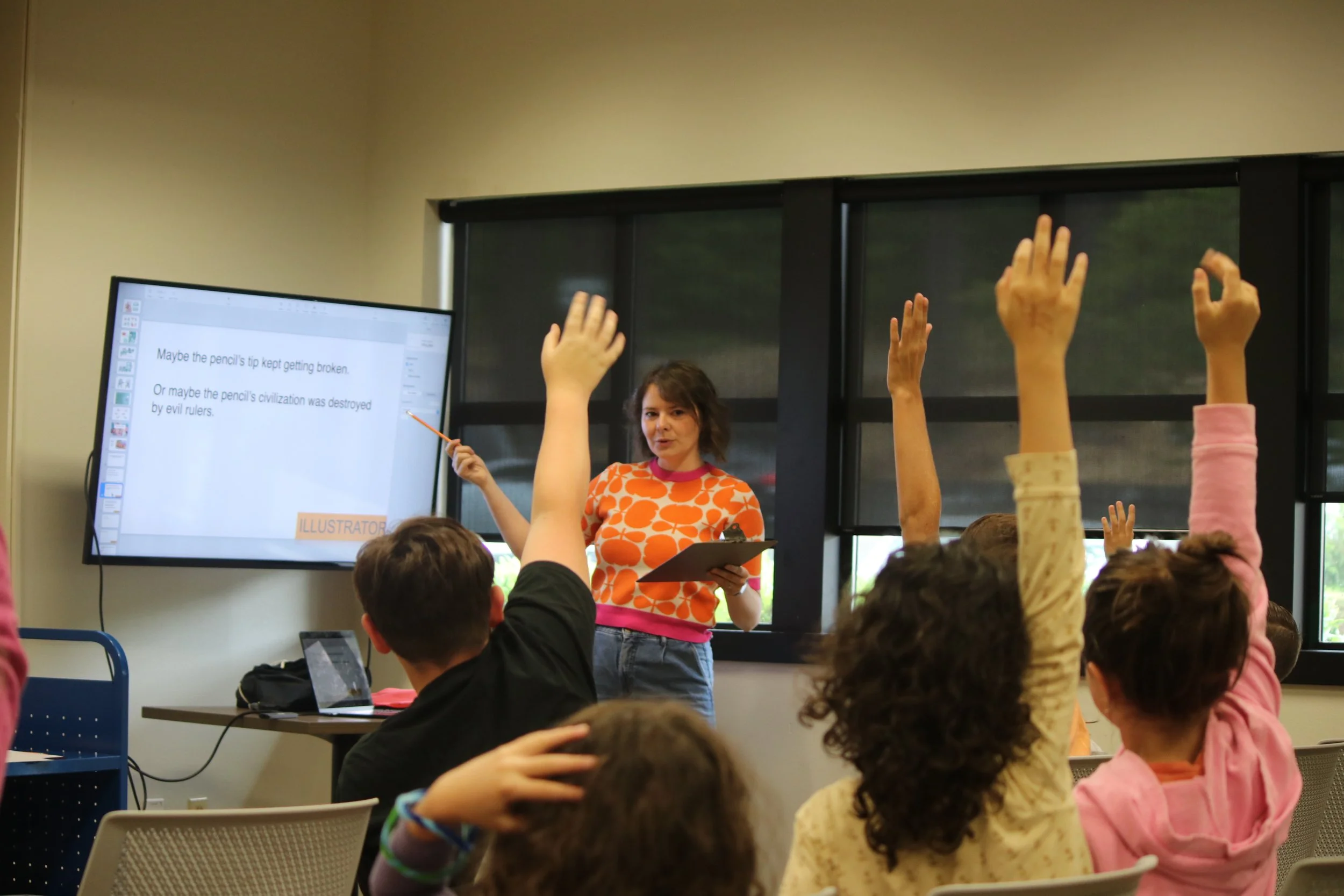The best way to learn is by doing, so I design every presentation to encourage students to develop their own storytelling voices by writing and drawing with me. During our time together, kids will jump out of their seats with ideas, cheer each other on as they share their art, and leave feeling excited to tell their own stories. All of my programs can be adapted for any age and any size of group from small classrooms to large assemblies.